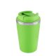 Termo doble pared. Pared interna de acero inoxidable y externa de plástico. Tapa con sistema de rosca que garantiza un cierre hermético. Sobretapa con sistema push que previene derrames. Su elegante detalle metálico, rompe con la monocromía y añade un toque de distinción. Capacidad de 12 Oz. Base de 7 cm de diámetro. Incluye caja individual.
