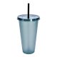 Vaso de plástico con tapa push y popote. Capacidad 27 oz. Base de 6.4 cm de diámetro.